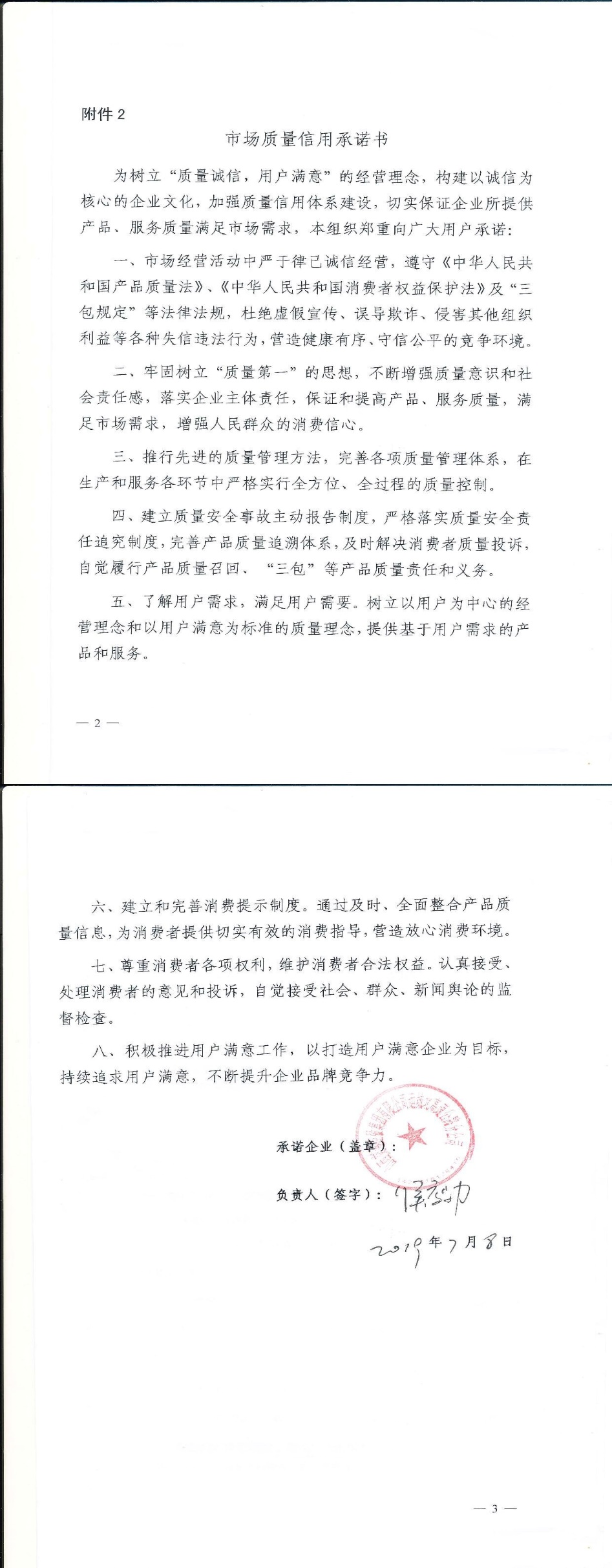 企业用户满意经营承诺书