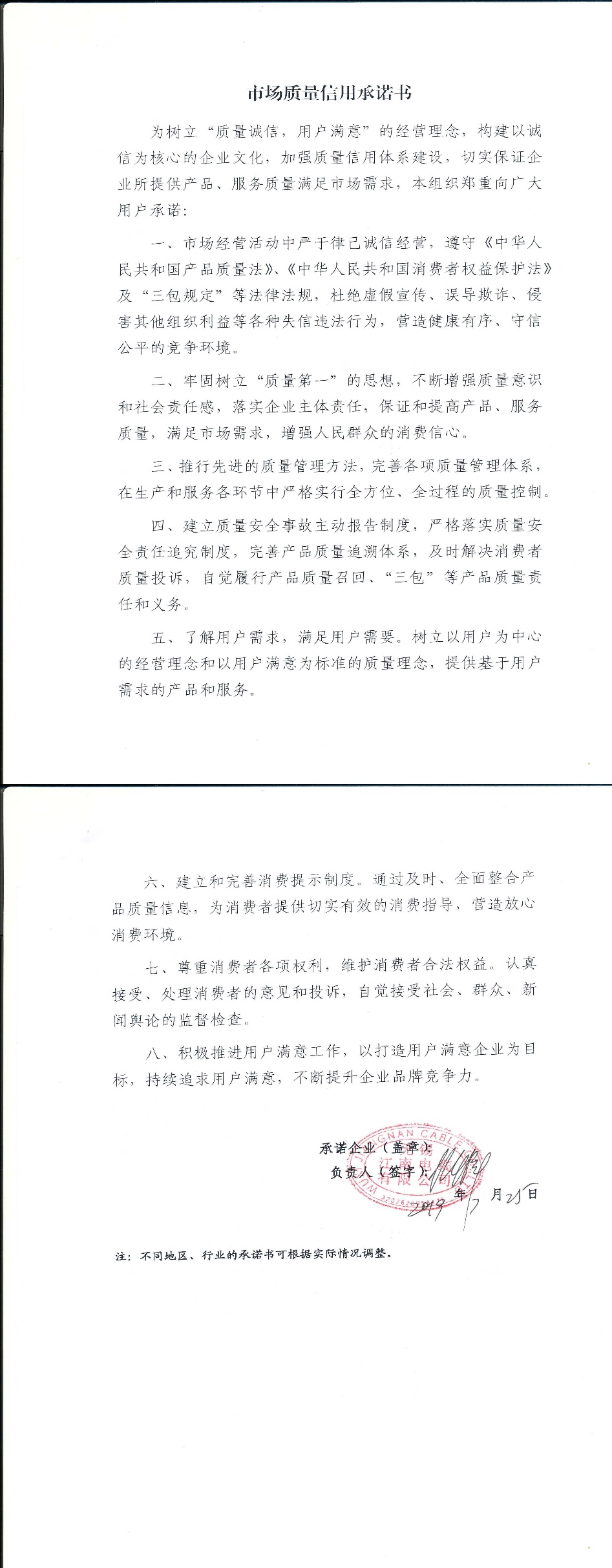 企业承诺