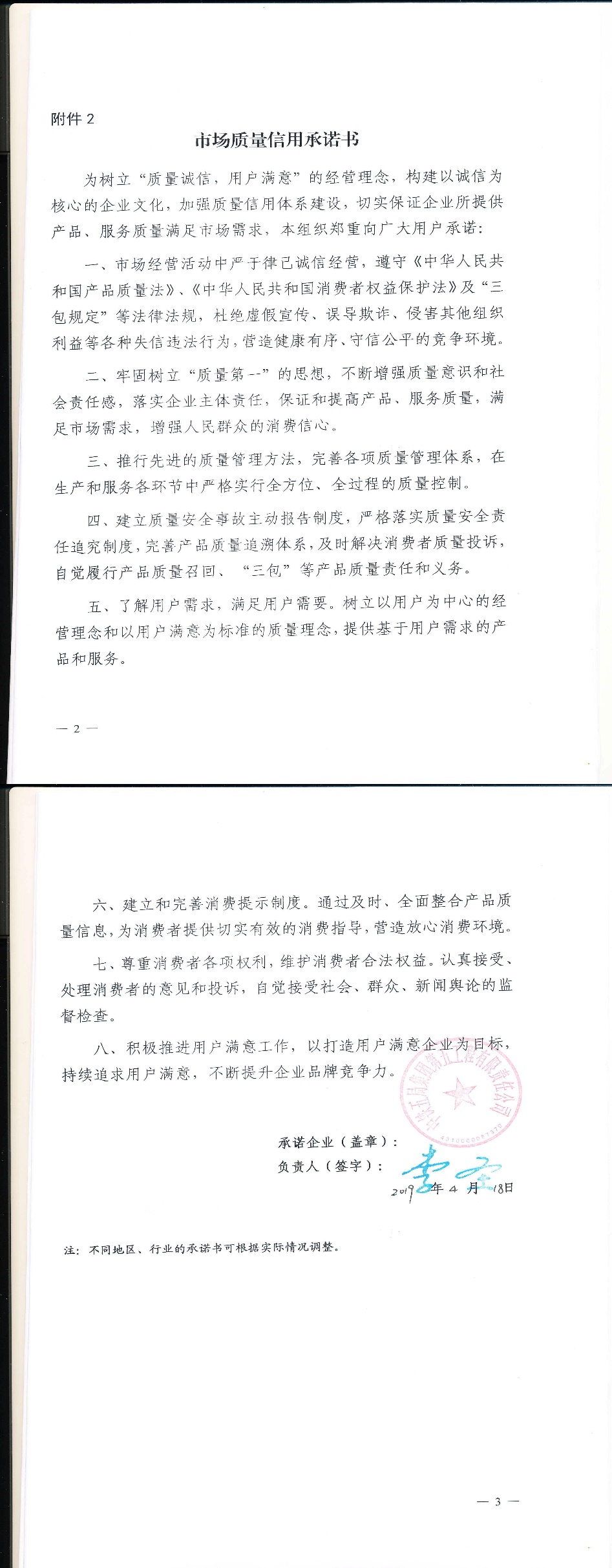 企业承诺