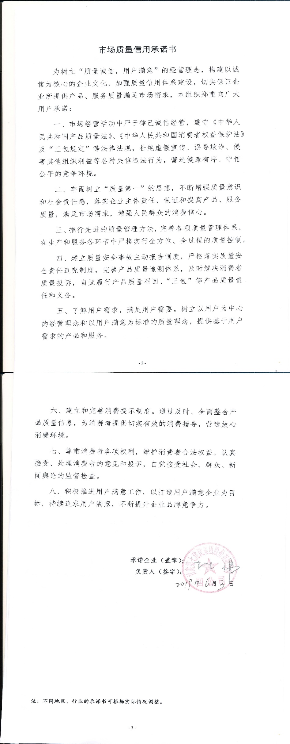 企业用户满意经营承诺书