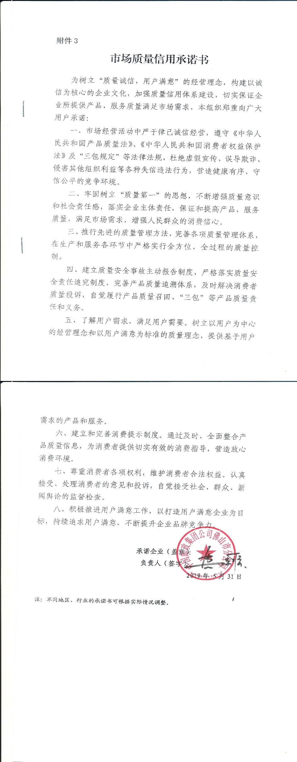 企业承诺
