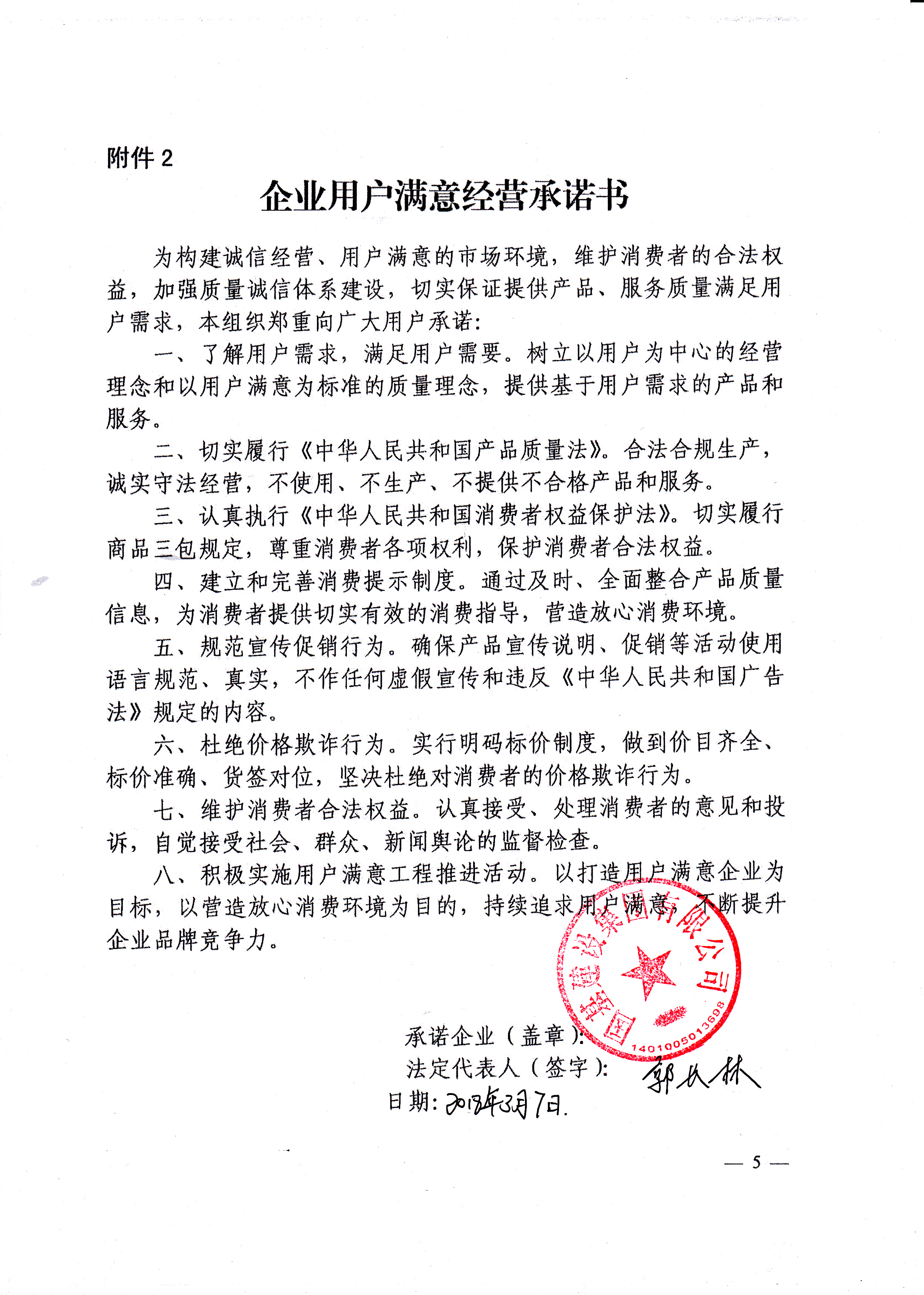 企业用户满意经营承诺书