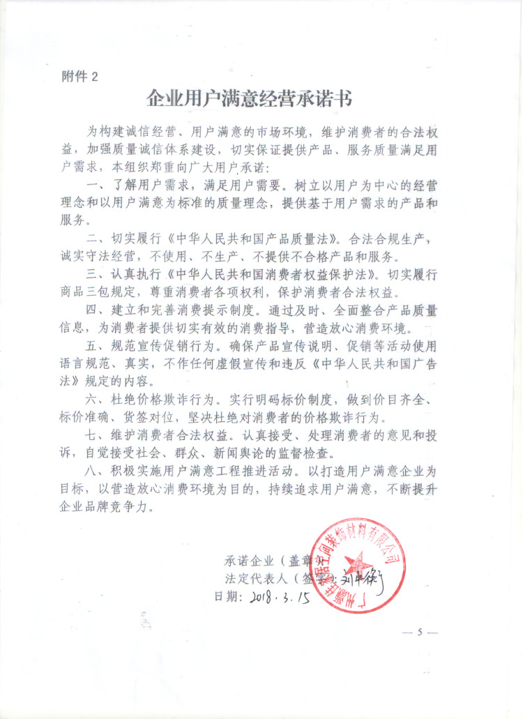 企业用户满意经营承诺书