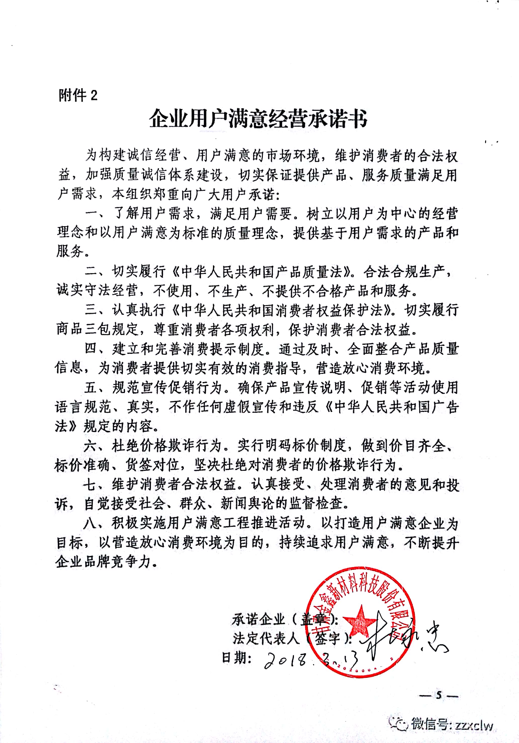 企业用户满意经营承诺书