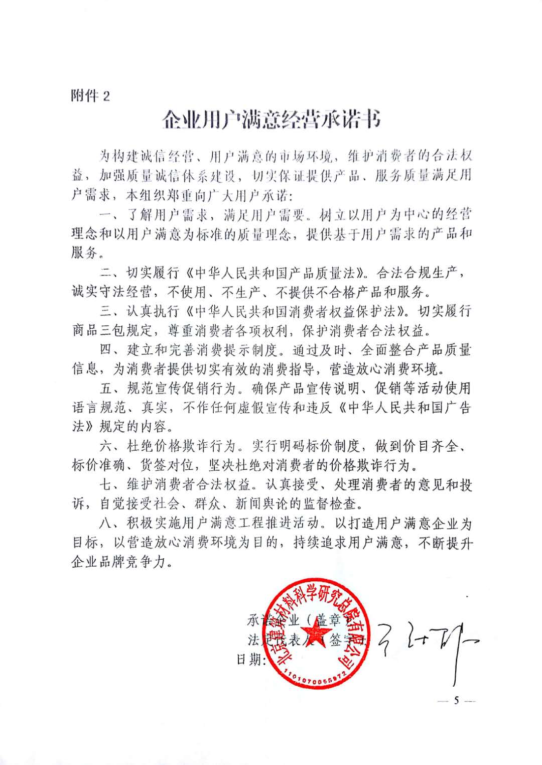 企业用户满意经营承诺书