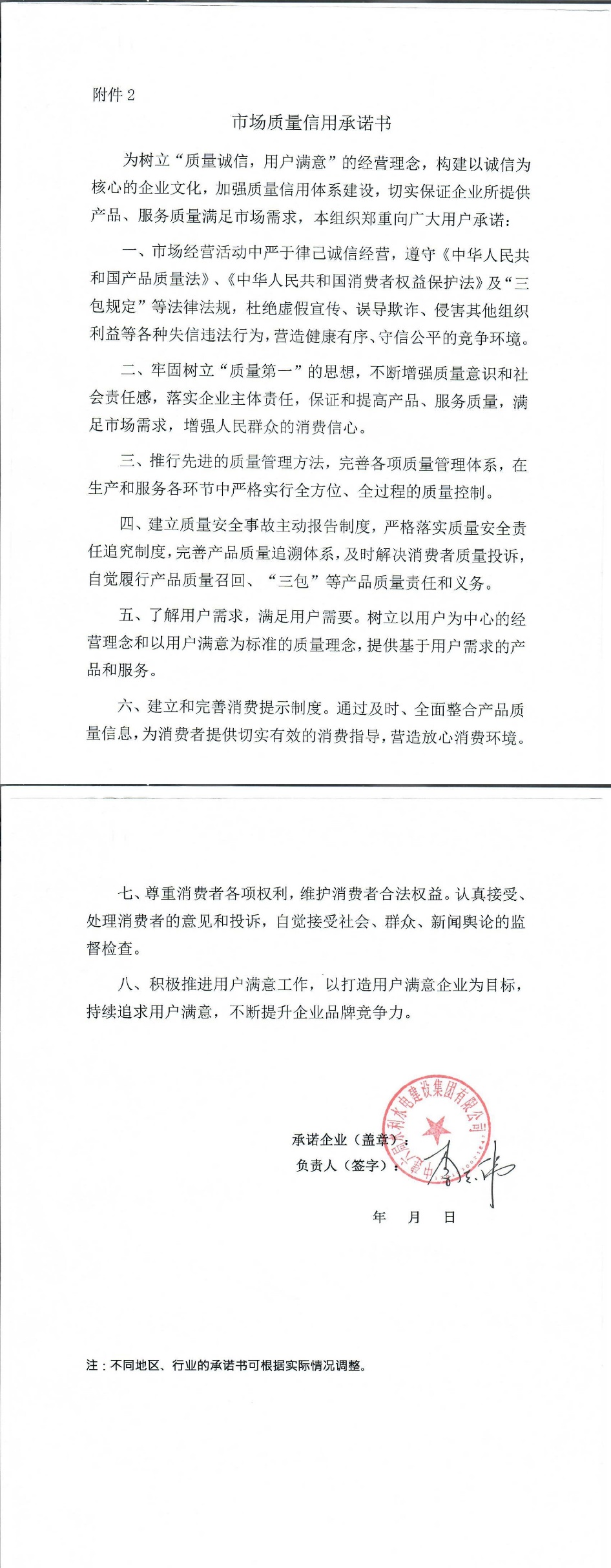 企业用户满意经营承诺书