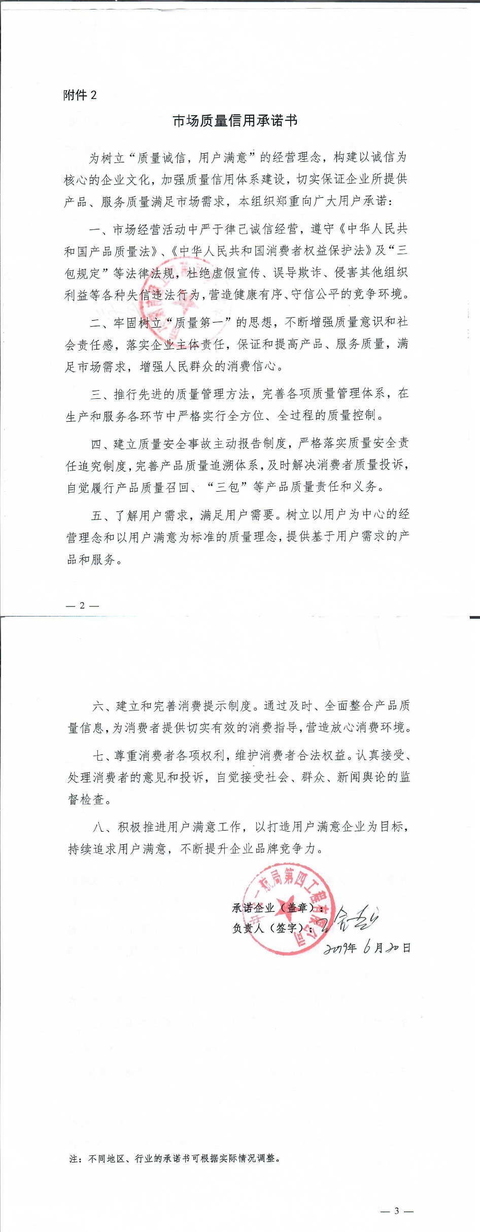 企业用户满意经营承诺书