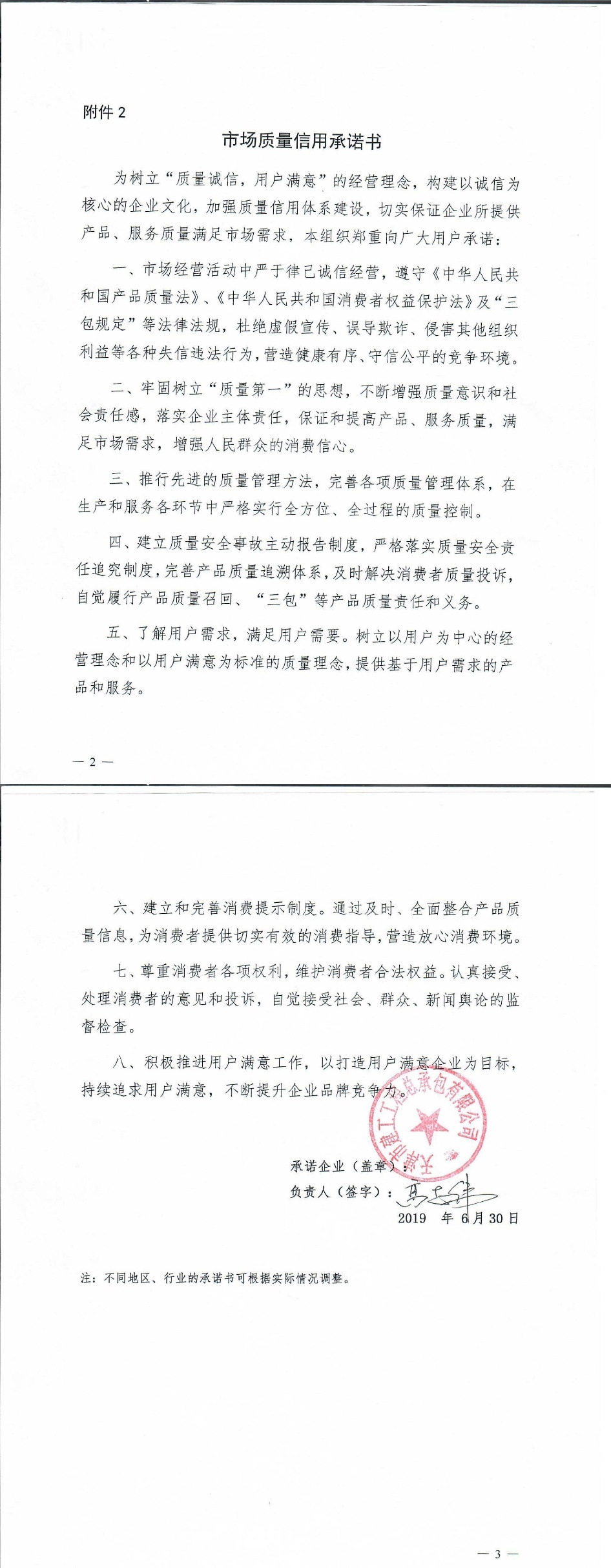 企业用户满意经营承诺书