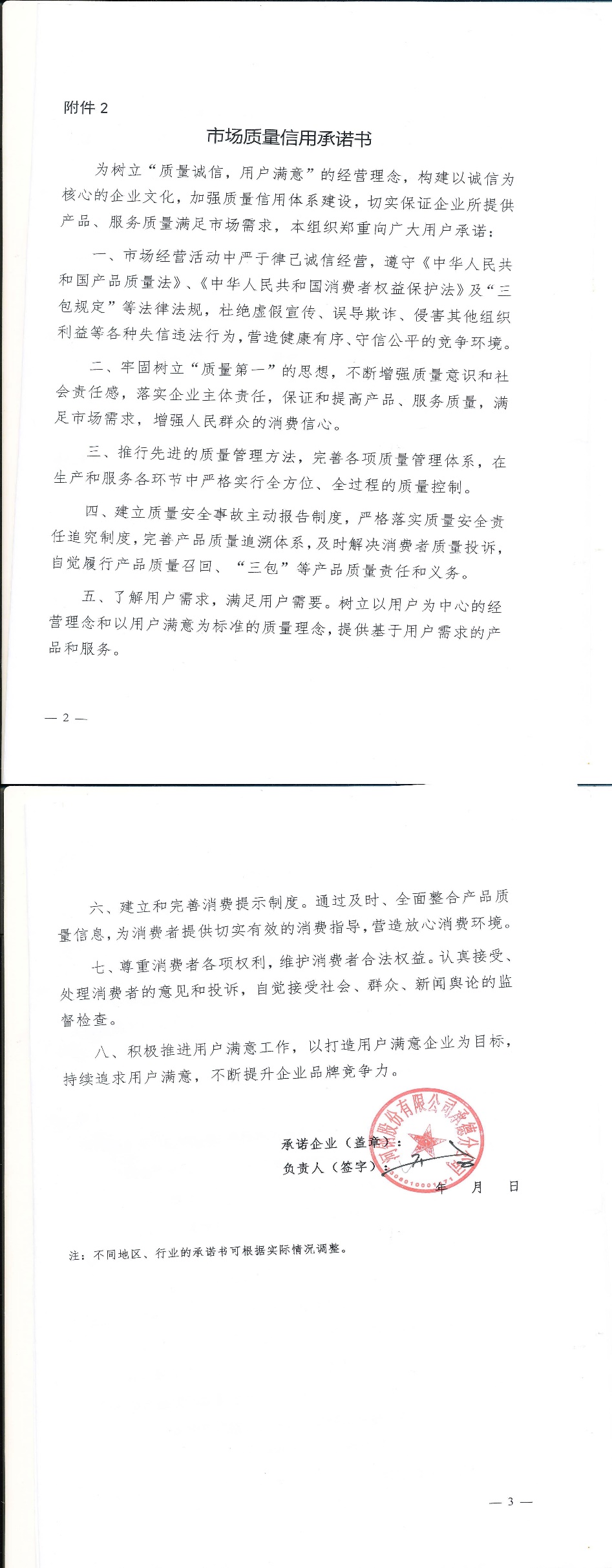 企业用户满意经营承诺书