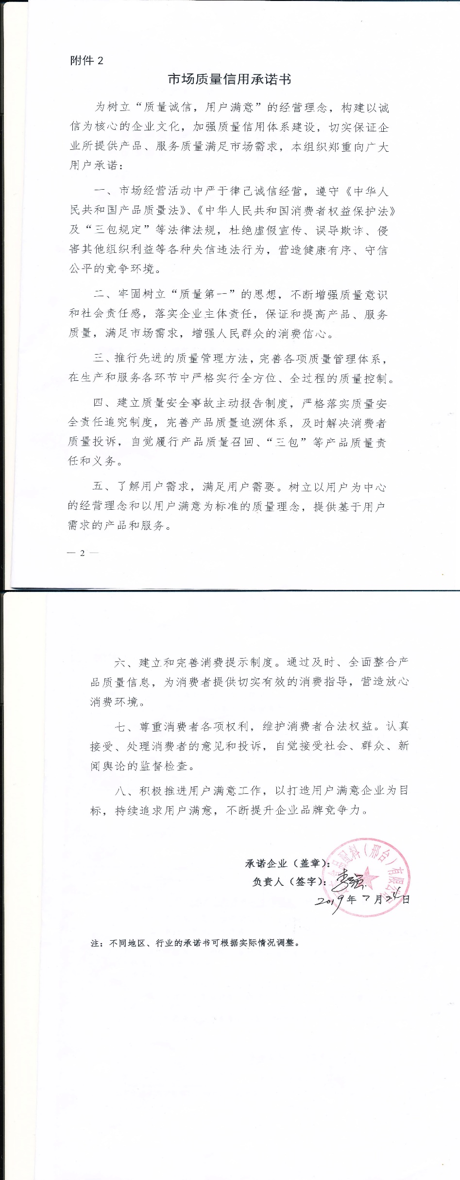 企业用户满意经营承诺书