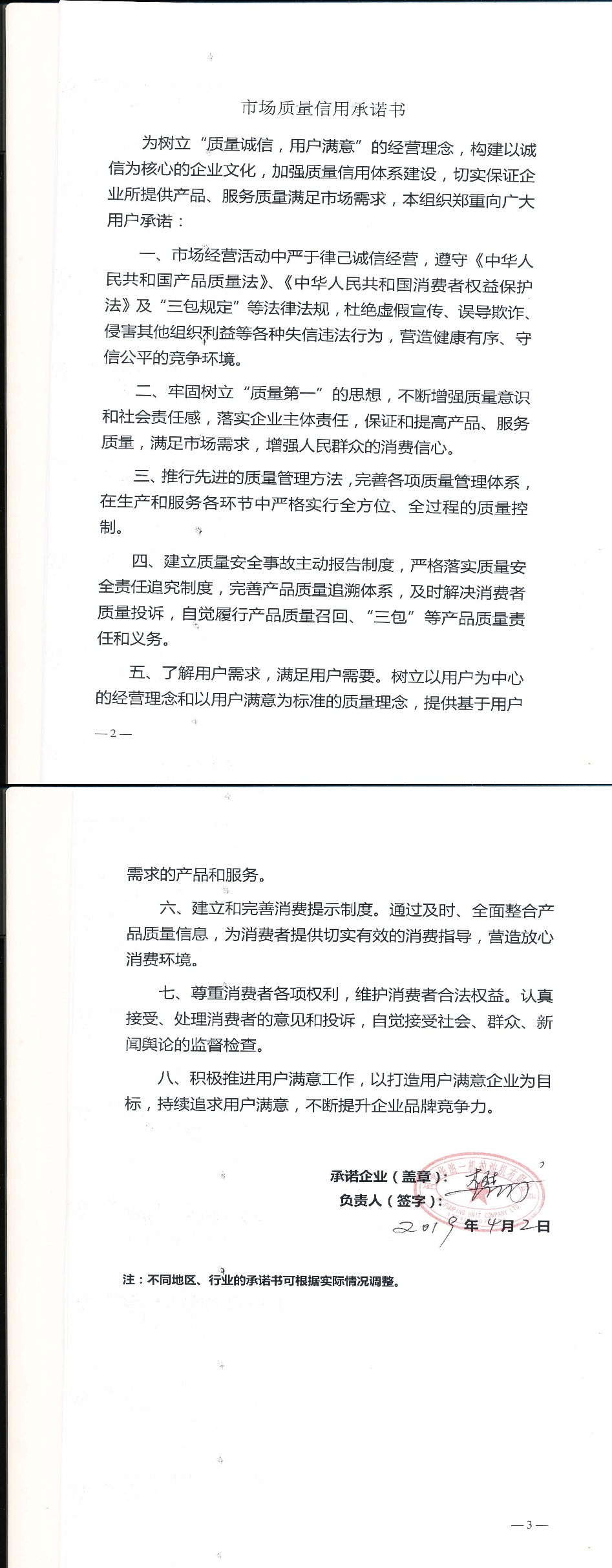 企业承诺