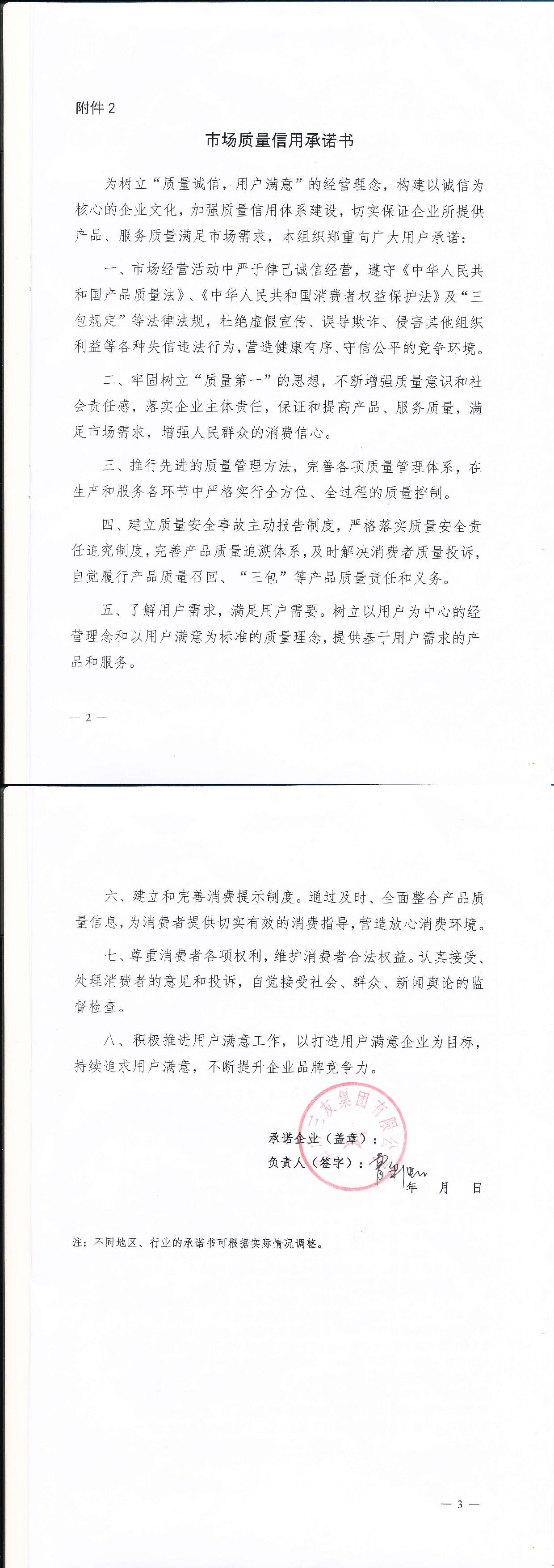 企业用户满意经营承诺书