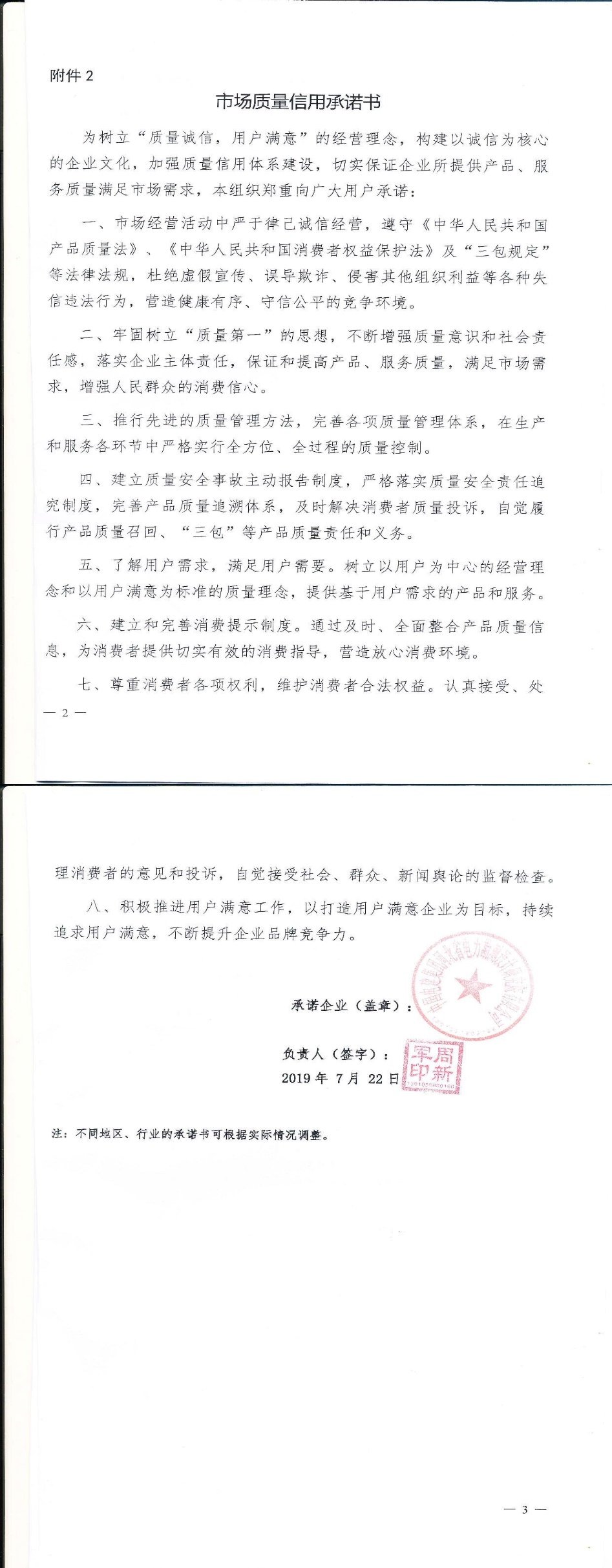 企业承诺