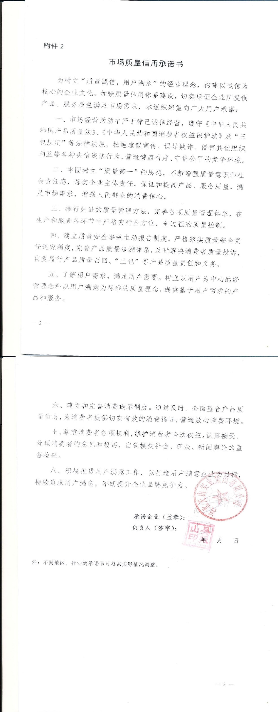 企业用户满意经营承诺书