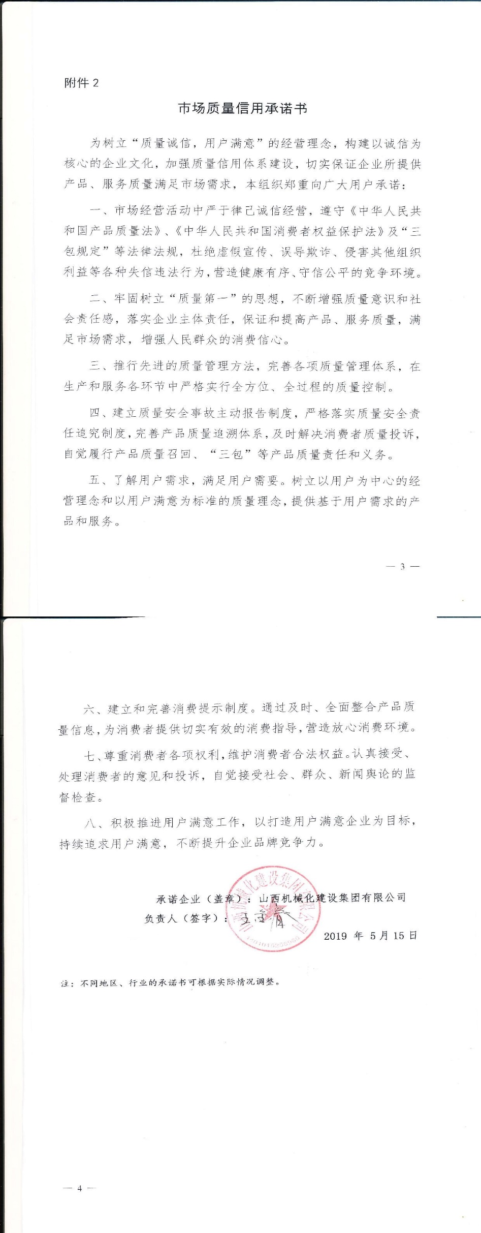 企业用户满意经营承诺书