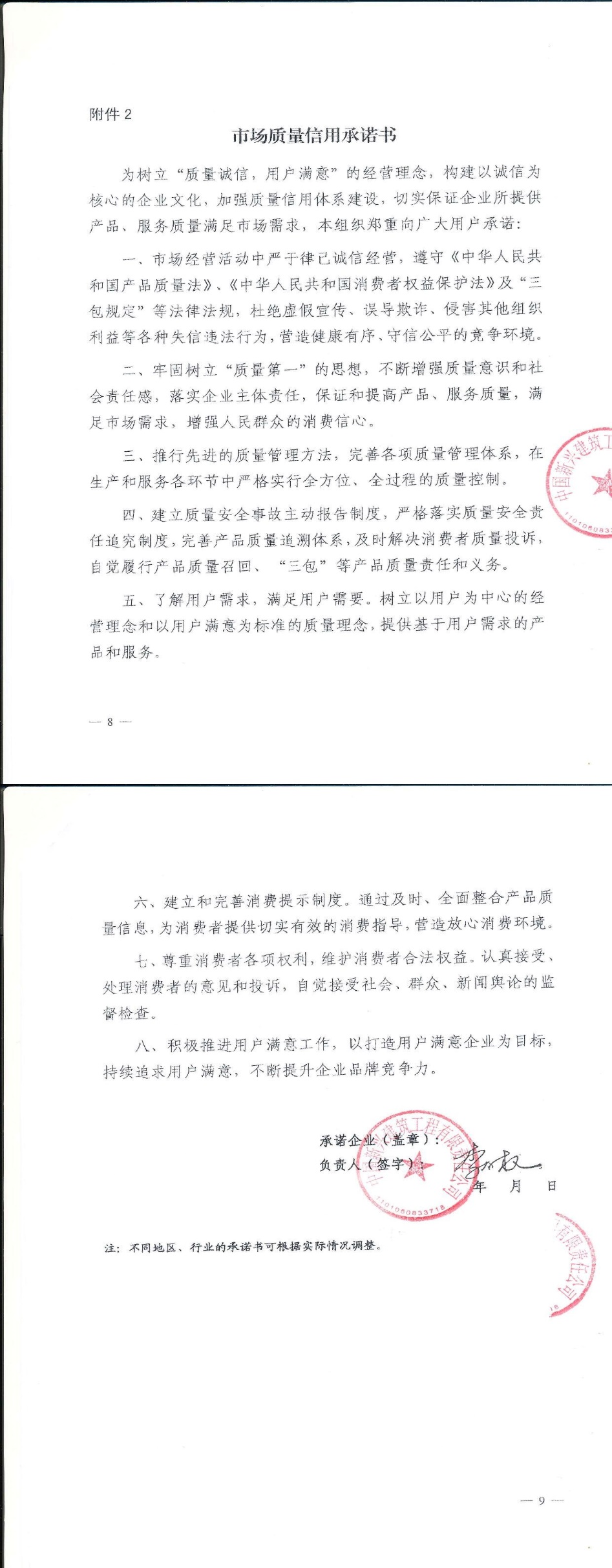 企业用户满意经营承诺书