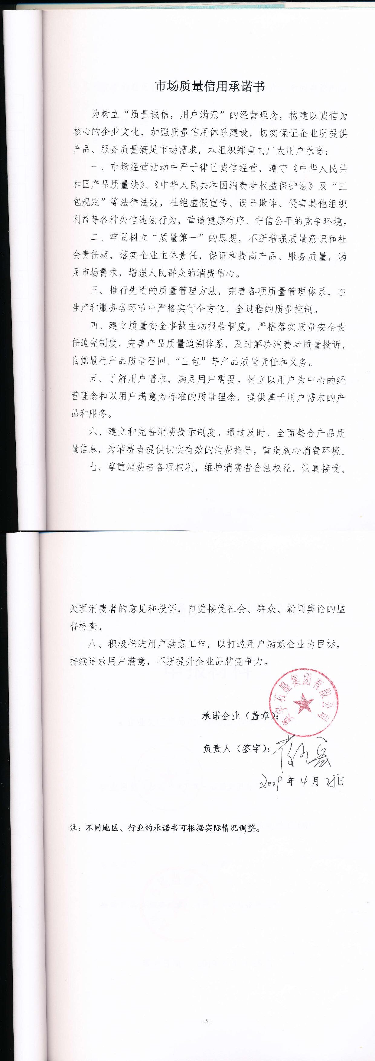 企业用户满意经营承诺书