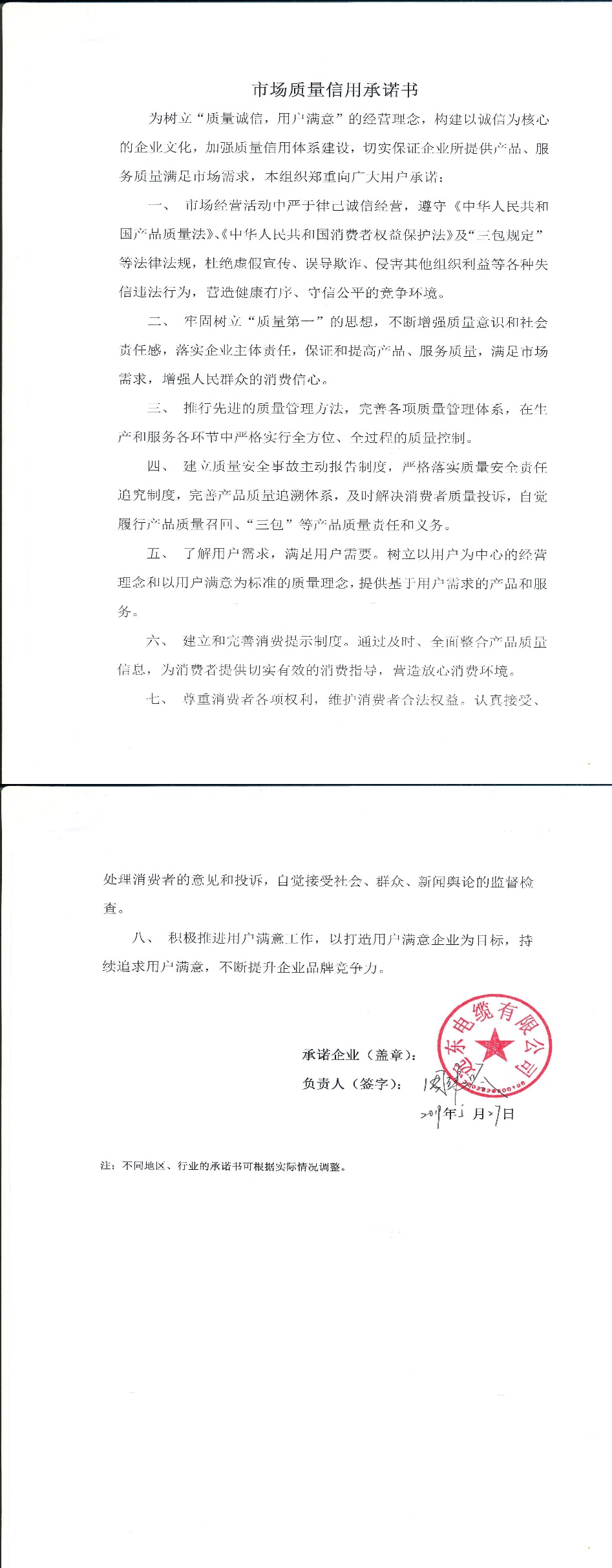 企业承诺