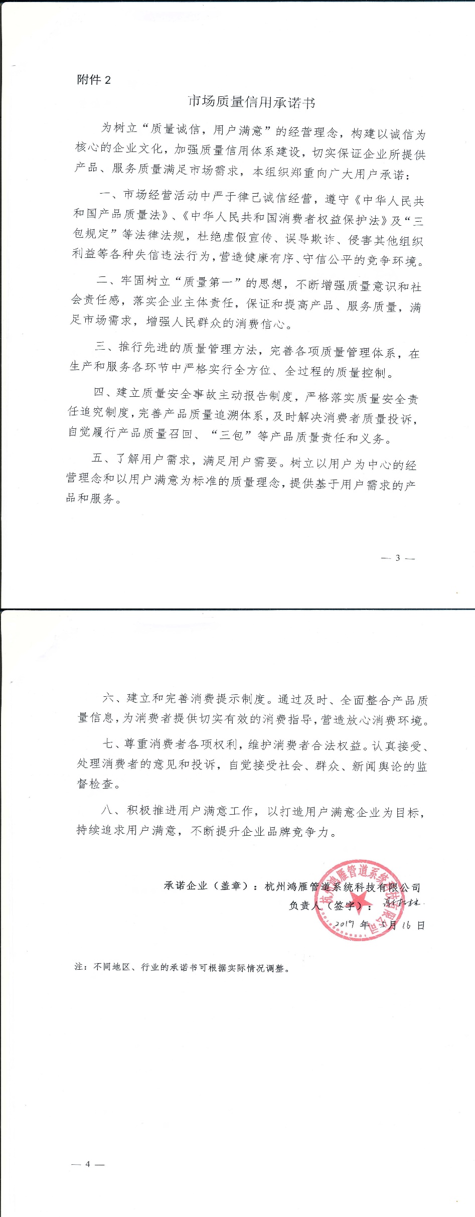 企业承诺