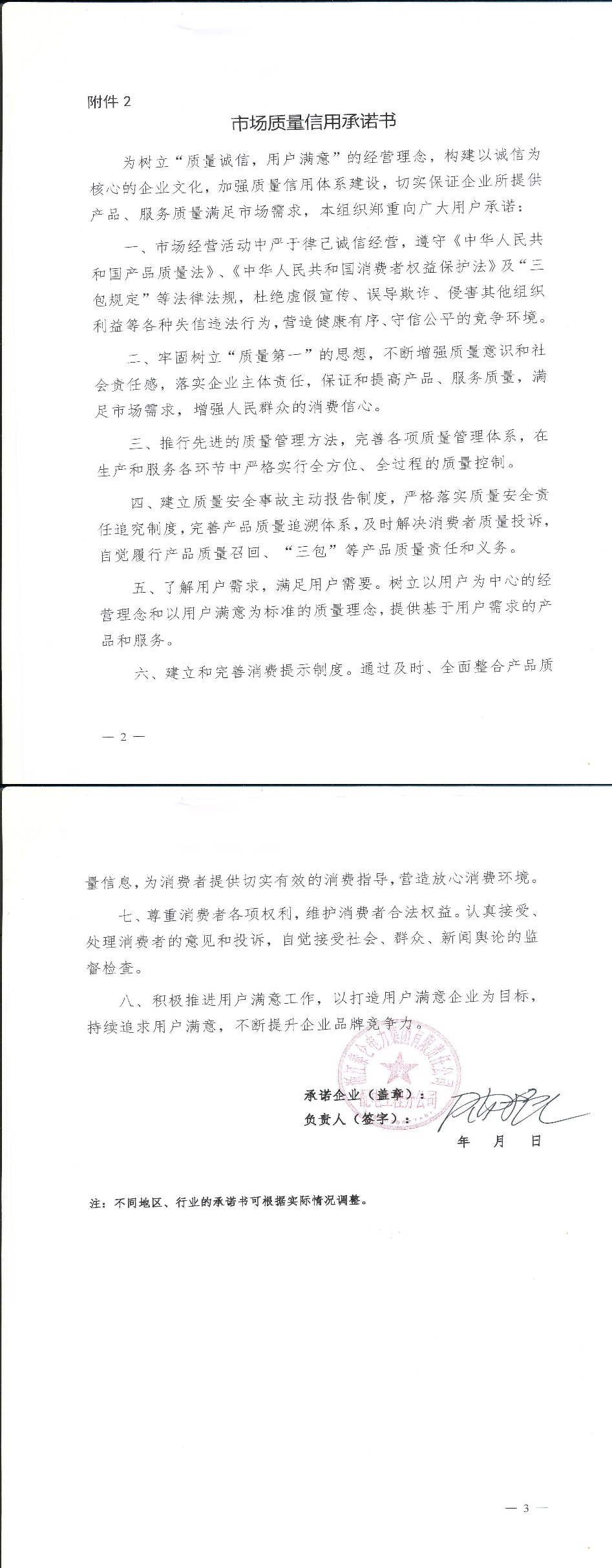 企业用户满意经营承诺书