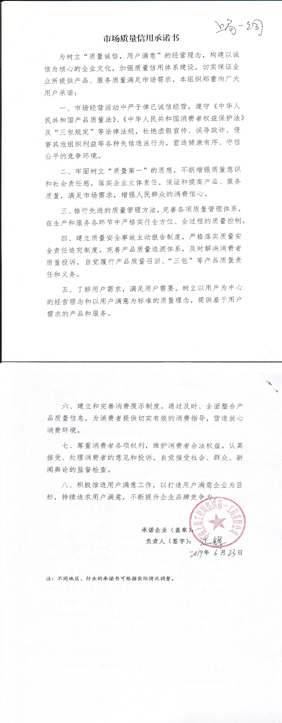 企业承诺
