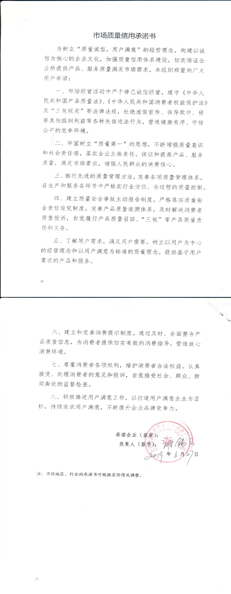 企业承诺