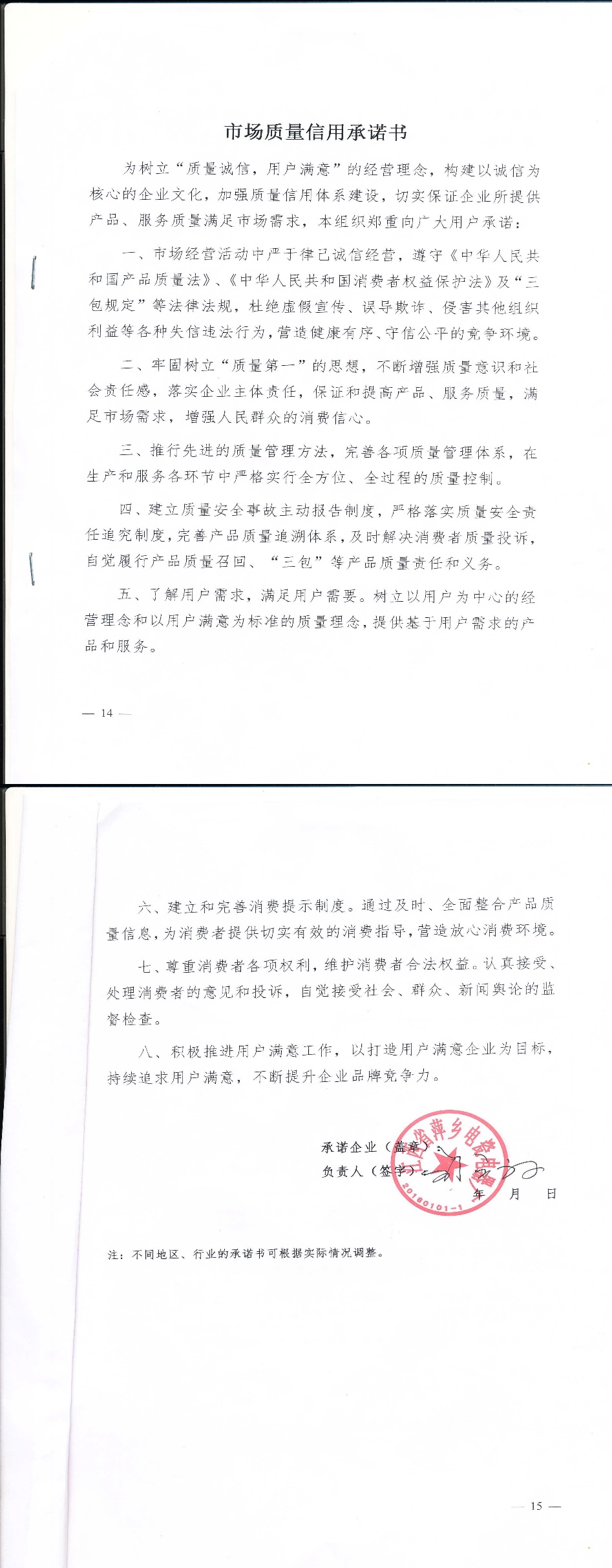 企业承诺