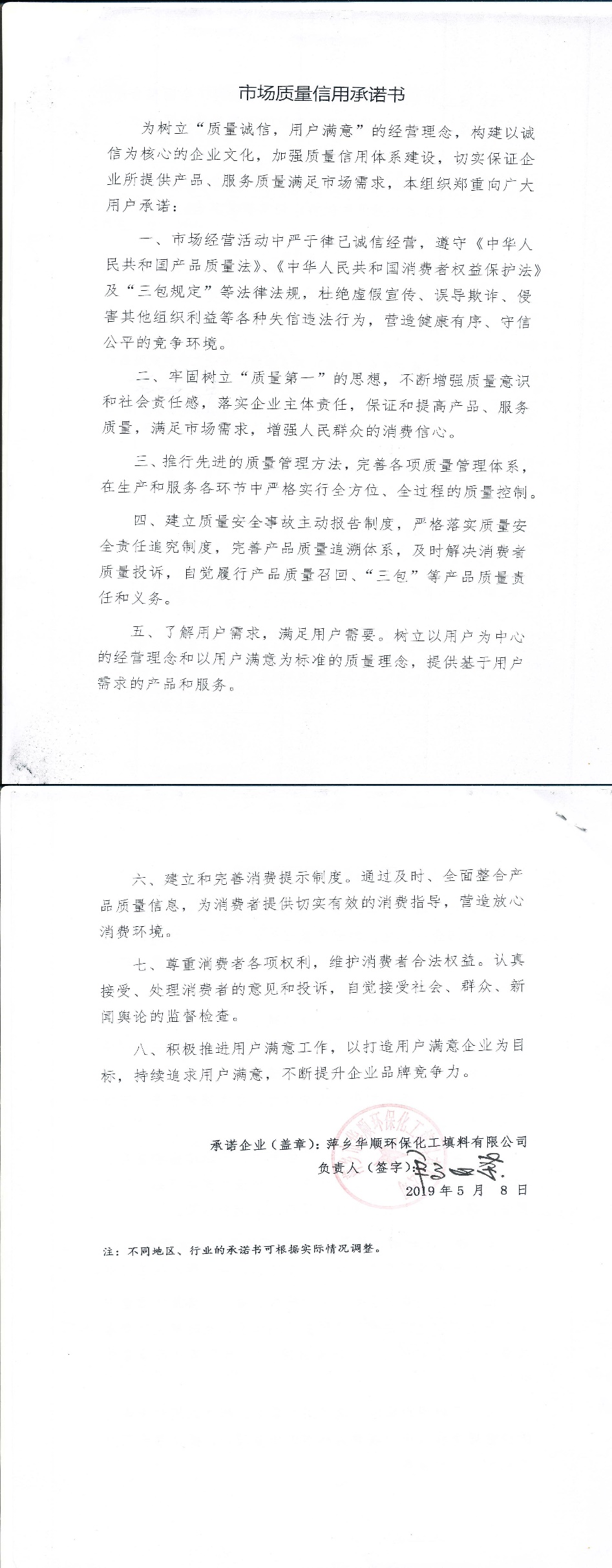 企业承诺