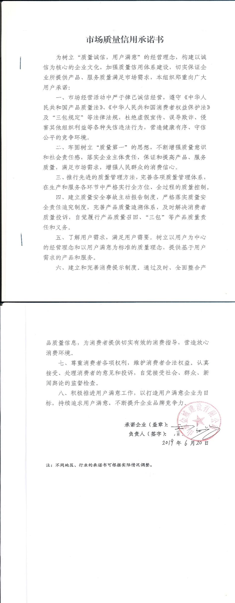 企业承诺