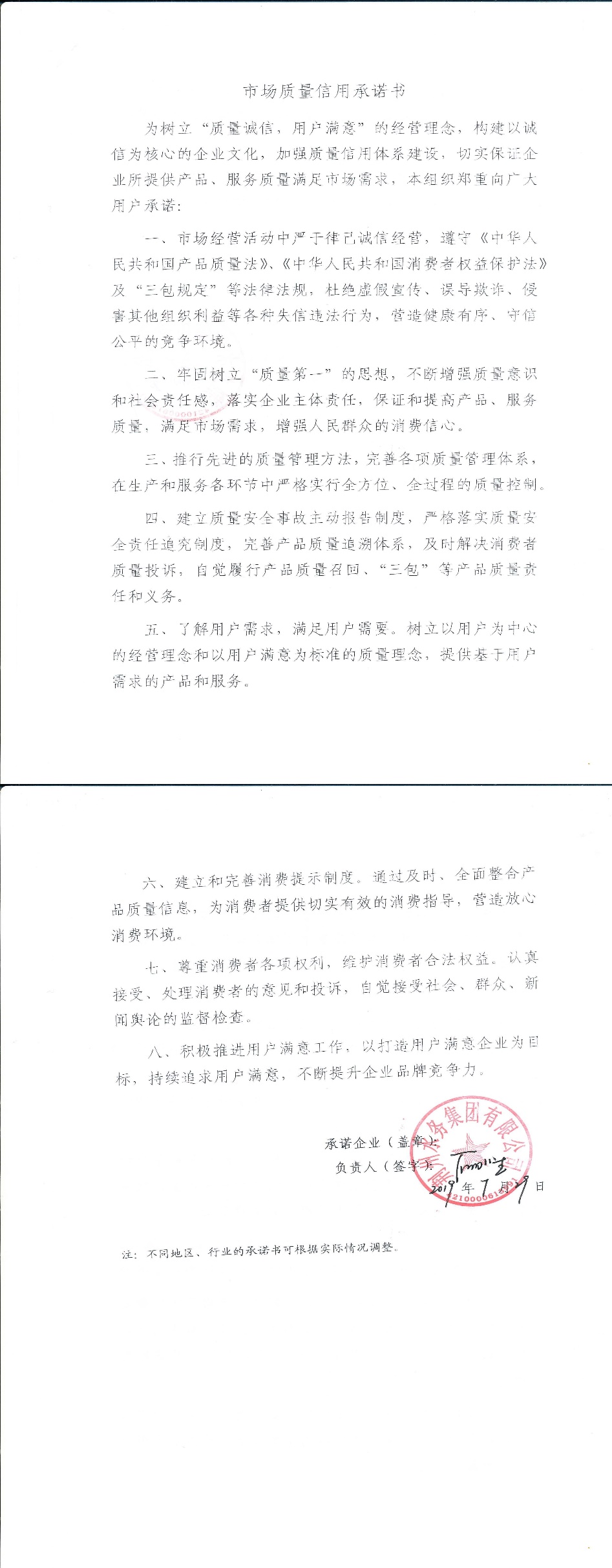 企业承诺