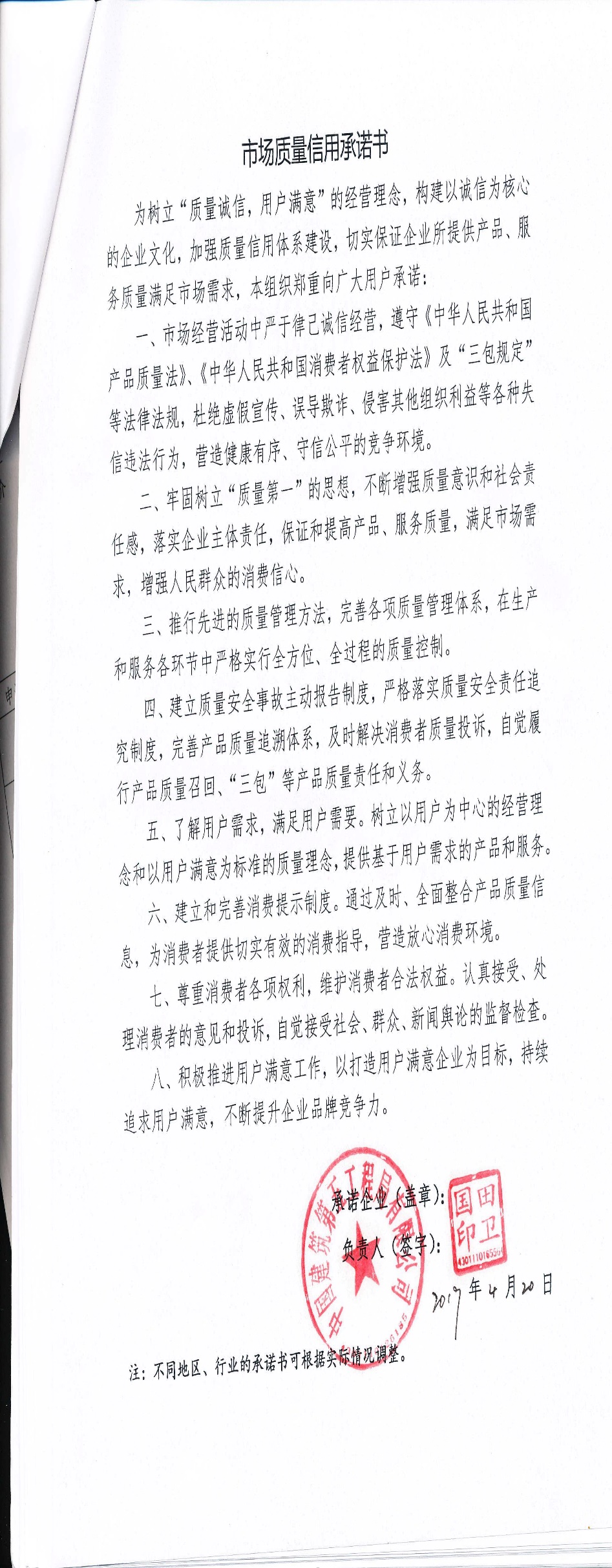企业承诺