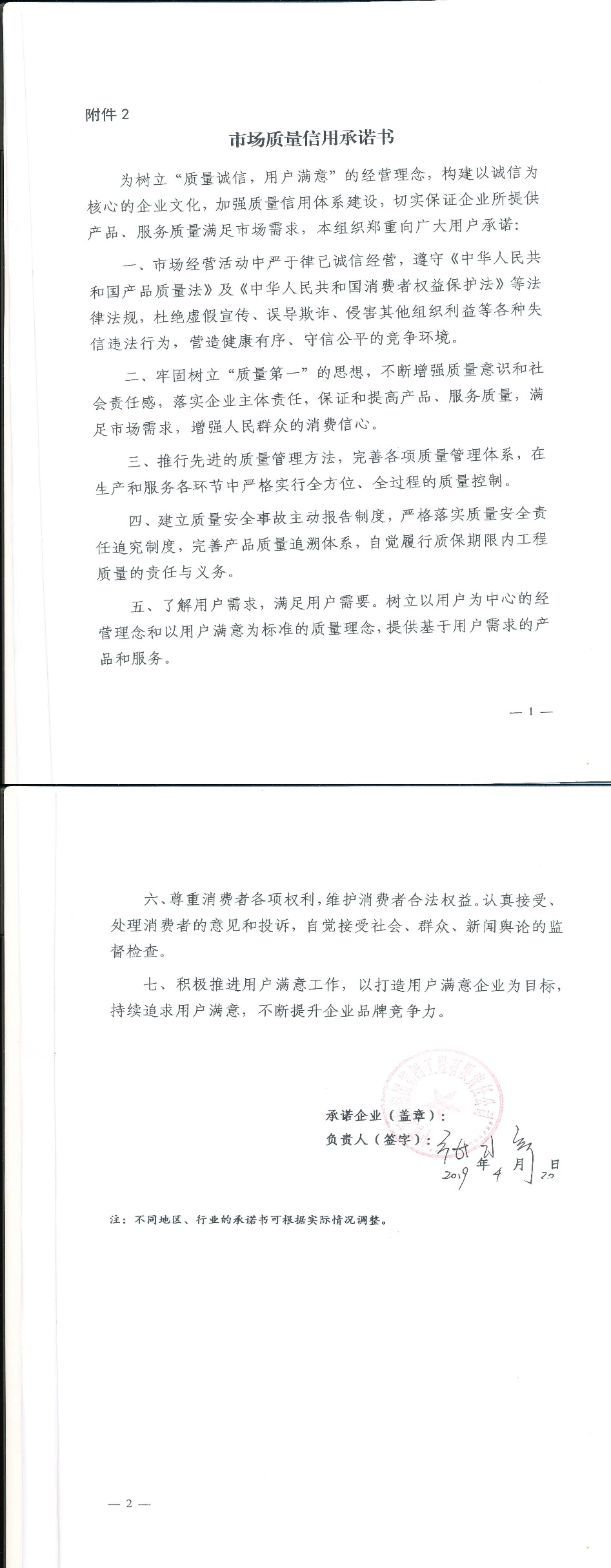 企业承诺