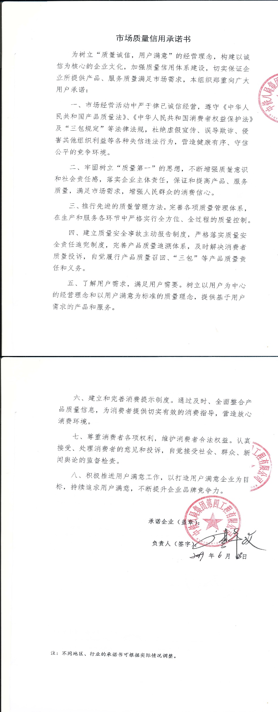 企业承诺
