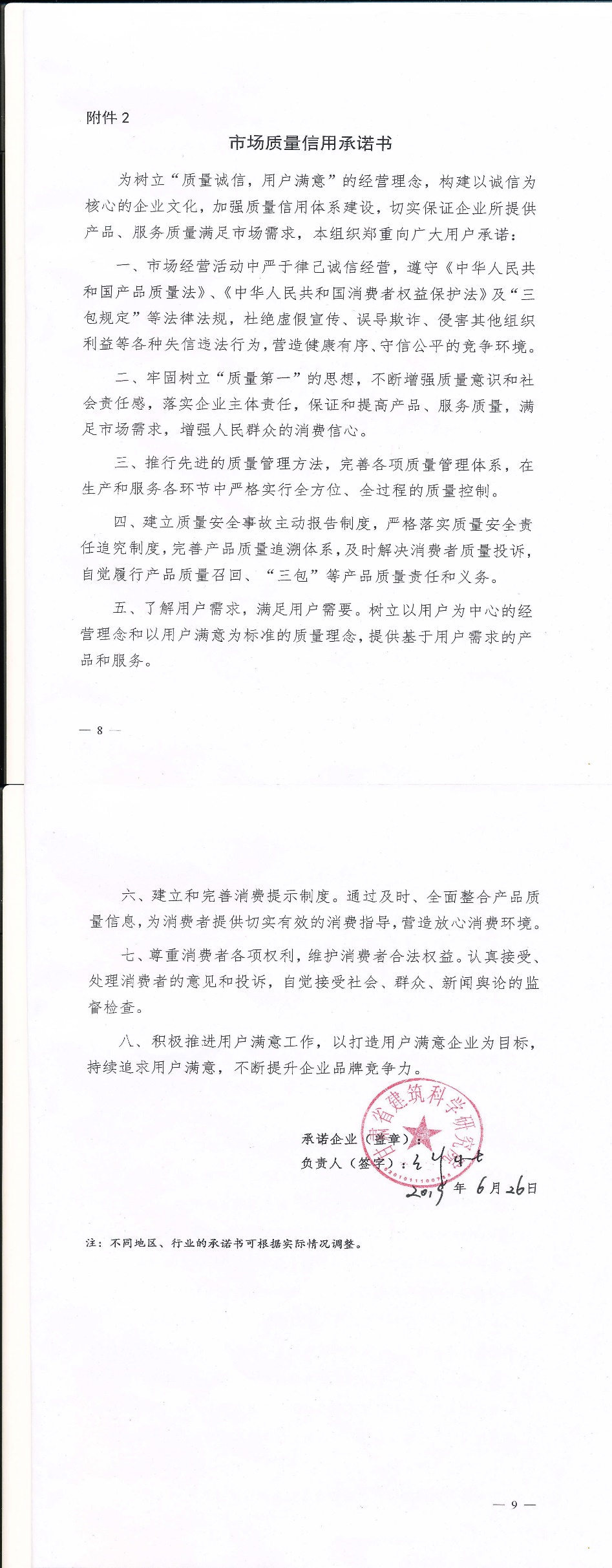 企业用户满意经营承诺书