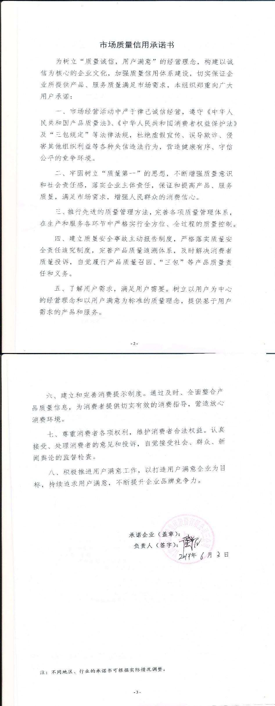 企业承诺
