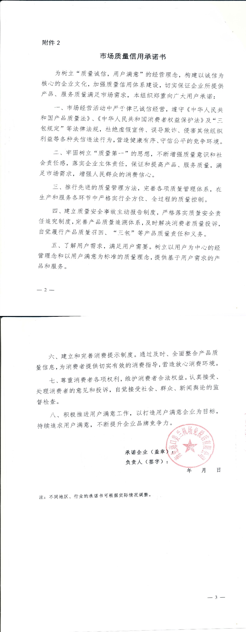 企业用户满意经营承诺书